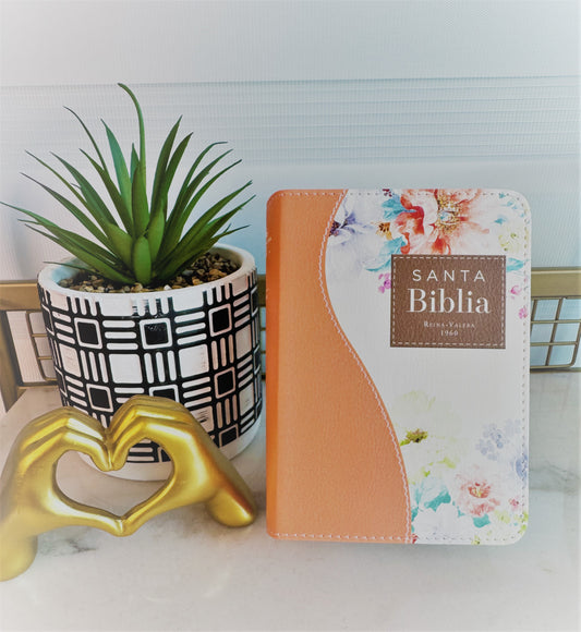 Biblia con Zíper Coral y Flores – RVR1960 (Mundo Biblia)