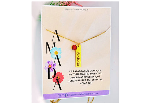 Precio habitual $18.00 USDPrecio habitualPrecio unitario / porPrecio de oferta $18.00 USDCollar "Bendecida" – Acero Inoxidable Dorado con Perla Roja
