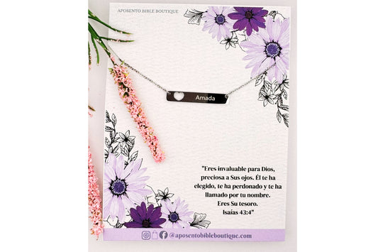 Diseñada para edificar, inspirar y recordarte quién eres en Dios. Esta colección de collares y aretes de acero inoxidable combina elegancia y mensaje, con grabados como “Confía en el proceso”, “Sonríe, Dios está obrando”, “Amada” y “Vencedora”.