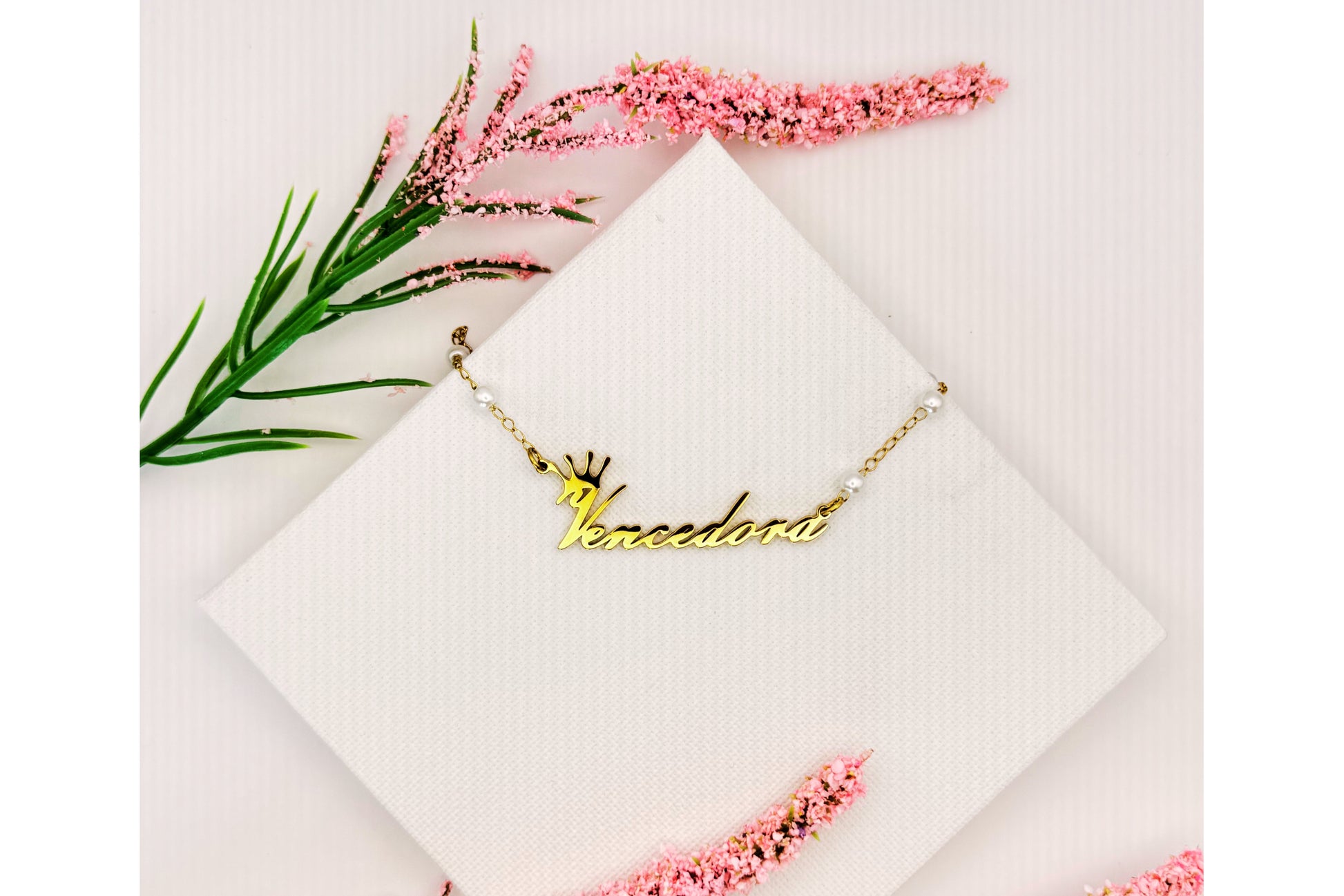 Esta delicada pieza combina la elegancia de las perlitas con el poder de una palabra grabada que lo dice todo: Vencedora. Porque fuiste llamada a caminar en victoria, con gracia y firmeza.